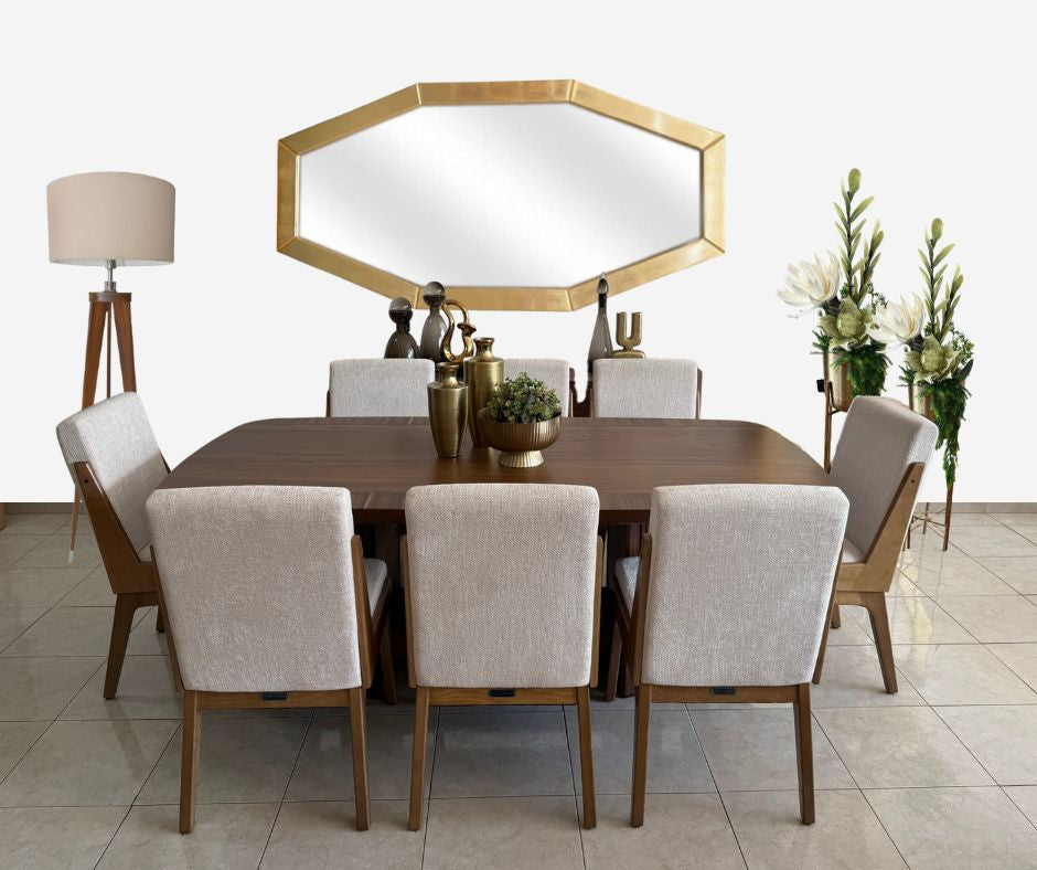 Comedor Ferrer con Silla Bilbao: una combinación magistral de diseño y funcionalidad. La mesa de chapa de parota destaca por su belleza natural y durabilidad excepcional, mientras que las elegantes sillas Bilbao en tonalidad beige aportan sofisticación y confort. Este conjunto transforma cualquier espacio en un área de encuentro refinada, perfecta para compartir momentos en familia. La parota, madera noble de gran resistencia, garantiza una inversión a largo plazo. Ideal para hogares que valoran la calidad artesanal y la estética contemporánea.