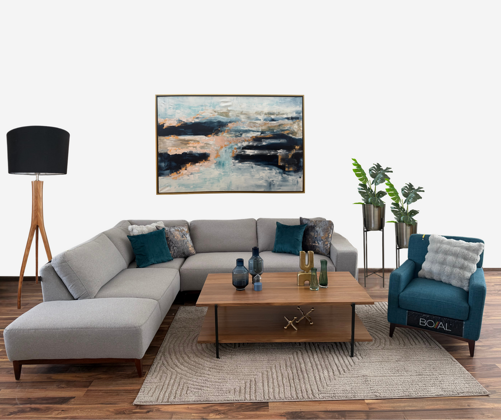 Introduce un toque de modernidad y estilo al conjunto de su sala de estar con el sofá Tiziano, perfecto para las esquinas. Hecho de tejido gris suave y resistente, este sofá cuenta con un diseño ergonómico que te ofrece el mejor confort durante todo el día.
