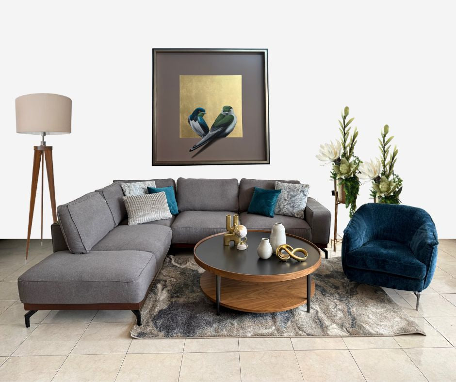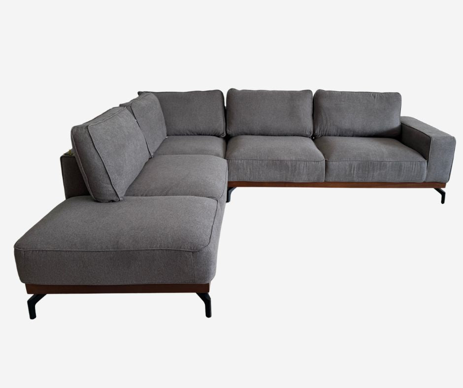 SALA ZOJA Transforma tu espacio con esta elegante sala esquinera que combina funcionalidad y diseño contemporáneo. Confeccionada en gris Oxford, ofrece una base neutral versátil que se adapta a cualquier estilo decorativo. Sus patas de madera noble proporcionan calidez y sofisticación, elevando el conjunto con acabados de calidad superior. Ideal para salas amplias, esta configuración esquinera maximiza el aprovechamiento del espacio mientras mantiene una silueta refinada. Un mueble que equilibra confort y estética para crear ambientes acogedores y modernos.